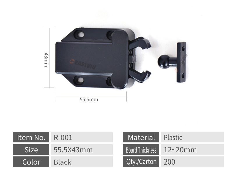 Black Push to Open Cabinet Catch Plastic(Size 55.5X43mm)Board Thickness 12~20mm