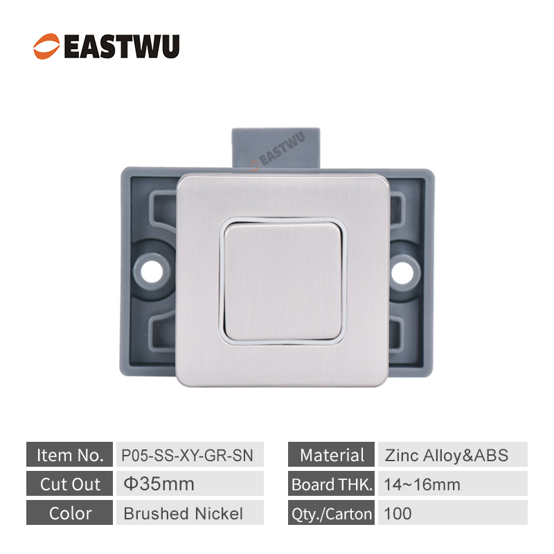 Brushed Nickel Zinc Alloy Square Cupboard Door Nonnoise Push Lock