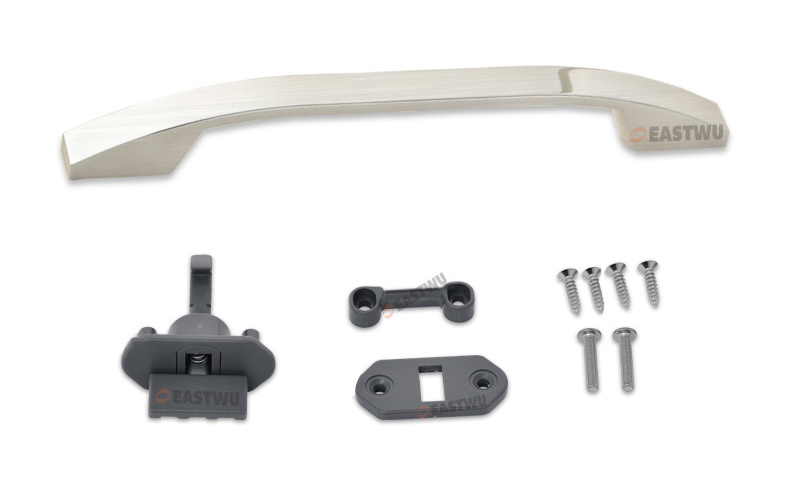 Brushed Nickel Cabinet Door Slim Metal Handle with Gray Plastic Hidden Locking Mechanism Lever Handles for caravan motorhome and RV