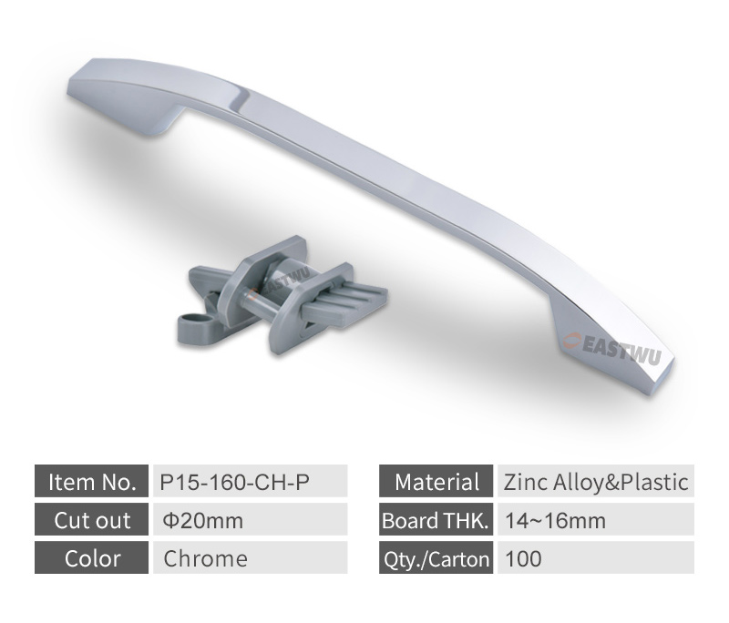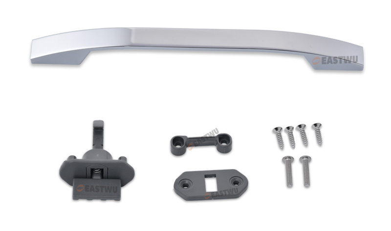 Chrome Cupboard Door Slim Metal Handle with Gray Plastic Hidden Locking Mechanism Lever Handles for caravan motorhome and RV