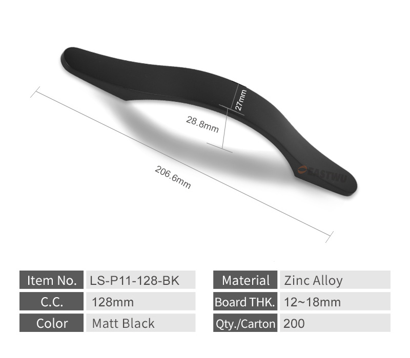 • Matt Black Drawer & Cabinet Door Metal Handle (Overall Length 206.6mm,C.C. 128 mm)