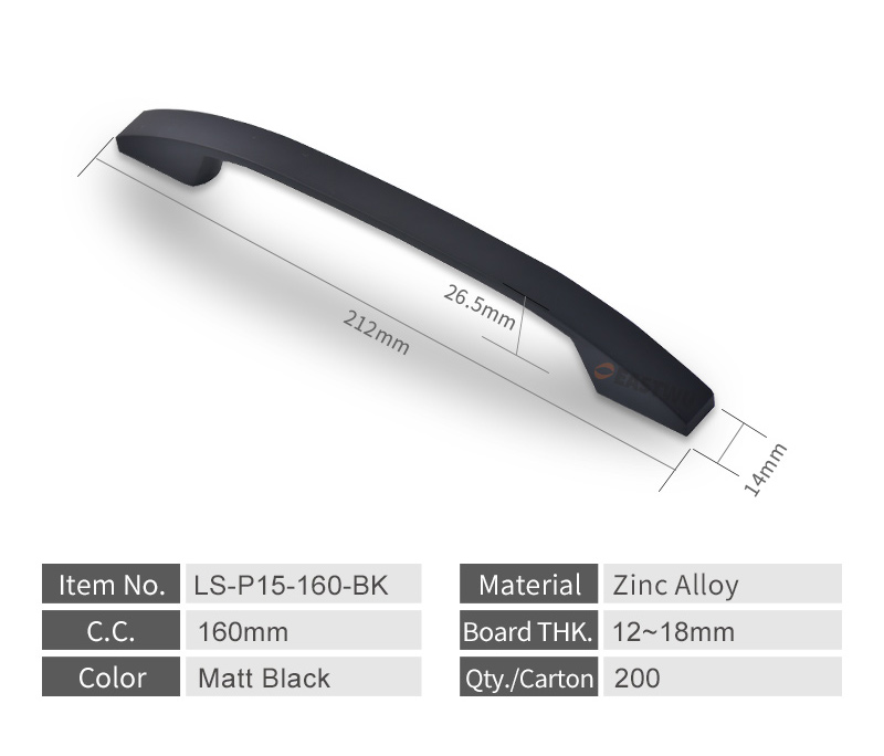 • Matt Black Drawer & Cabinet Door Metal Handle(Overall Length212mm,C.C.160mm)