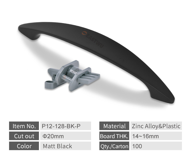 Cupboard Door Matt Black Metal Handle with Plastic Hidden Locking Mechanism Lever Handles for caravan motorhome and RV