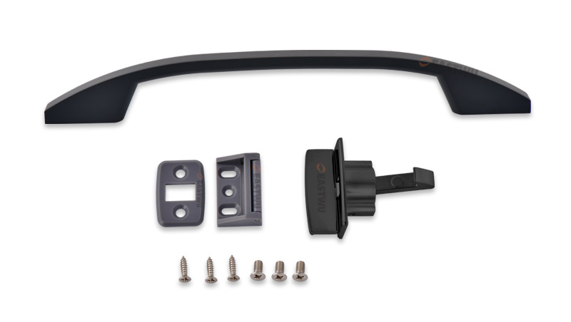 Matt Black Drawer Door Slim Metal Handle with Matt black Metal Hidden Locking Mechanism Lever Handles and locking system for caravan motorhome and RV