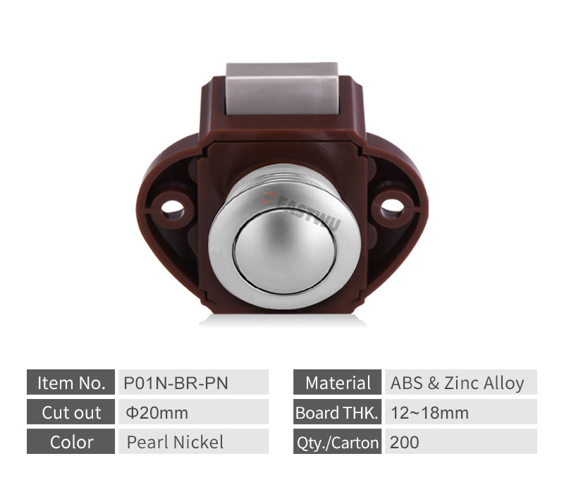 Pearl Nickel Knob Caravan Cabinet Mini Push Lock and Brown Mechanism