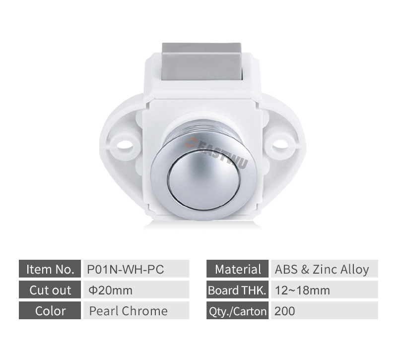 Pearl Chrome Knob Caravan Cabinet Mini Push Lock and White Mechanism