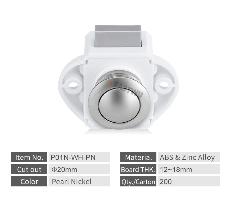 Pearl Nickel Knob Caravan Cabinet Mini Push Lock and White Mechanism