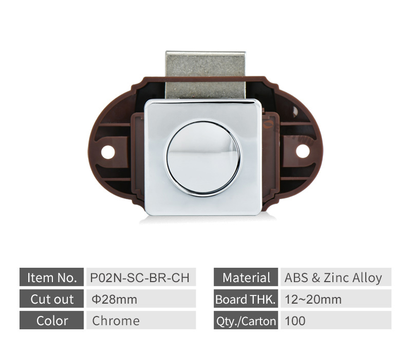 ·Material: Zinc Alloy push button, decoration ring, cam & connecting bar; Plastic lock base.