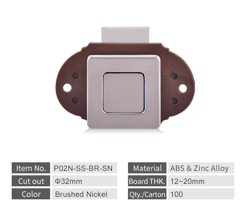 ·Material:Zinc Alloy push button,decoration ring,cam &connecting bar; Plastic lock base.