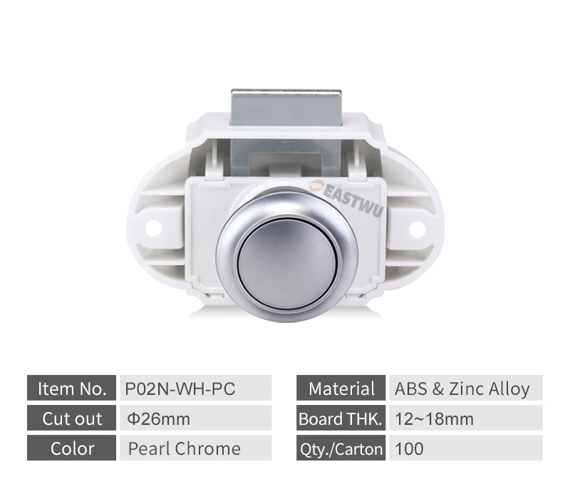 ·Material: Plastic push button with injected-inbody brass nut,decoration ring & lock base;Zinc Alloy cam & connecting Bar.