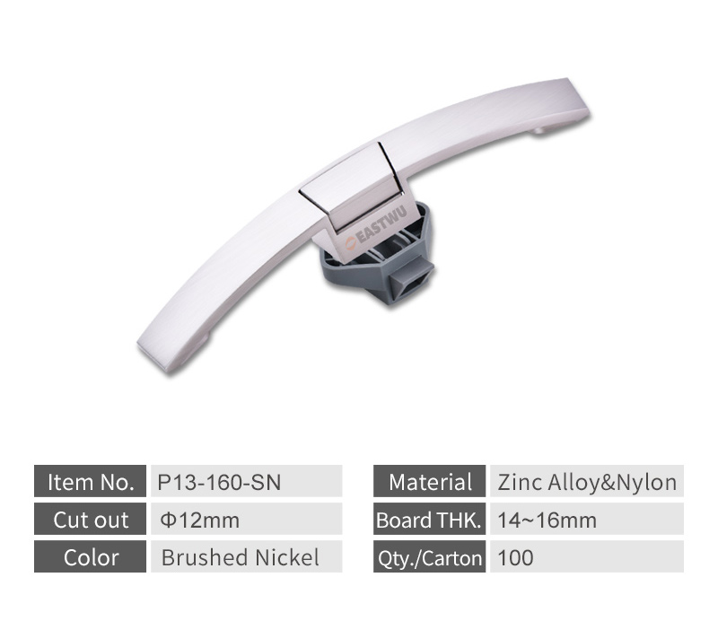 Brushed Nickel Zinc Alloy Push Type Cupboard Door Metal Handle Lock