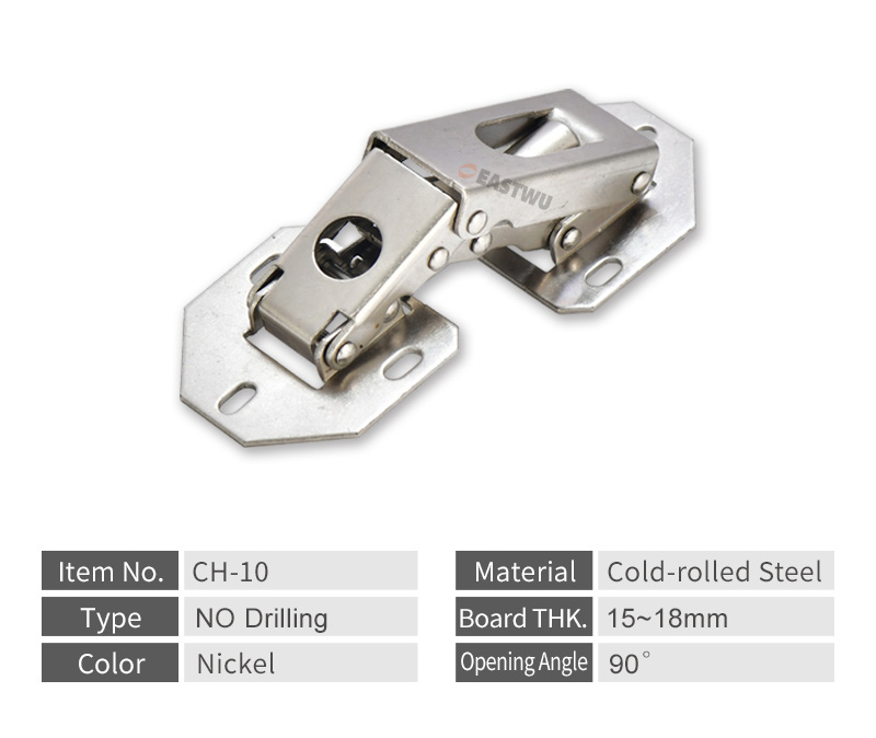 • Nickel RV Cupboard Door Hinge Cold-rolled Steel NO Drilling Opening Angle 90°