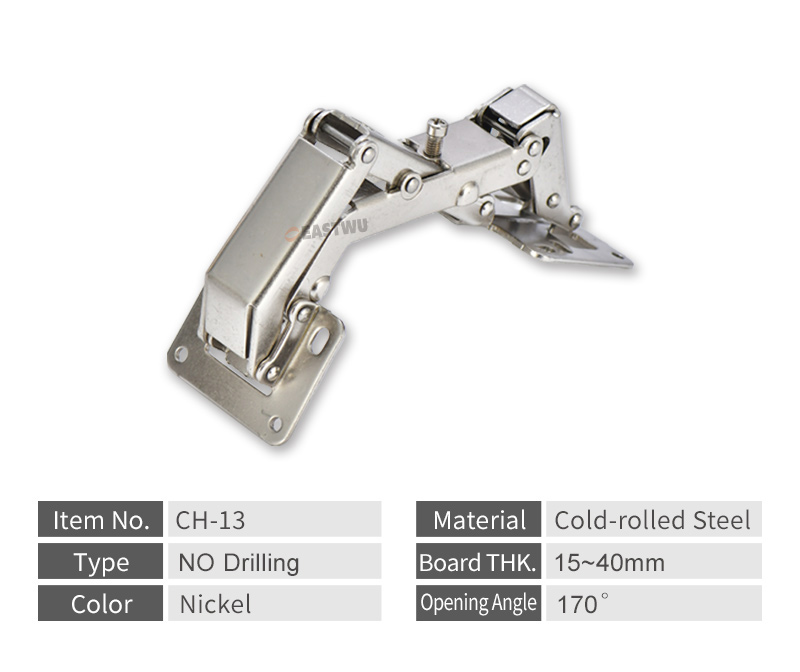 • Nickel RV Cupboard Door Hinge Cold-rolled Steel NO Drilling Opening Angle 170°