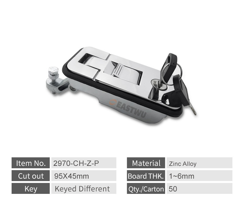 Chrome Keyed Different Trailer Tool Box Large Compression Lock Cut Out 95*45mm