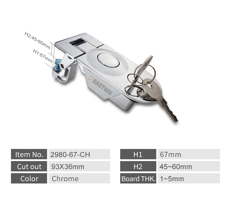 • Chrome Trailer Tool Box Round Type Compression Lock Cut Out 91*36mm