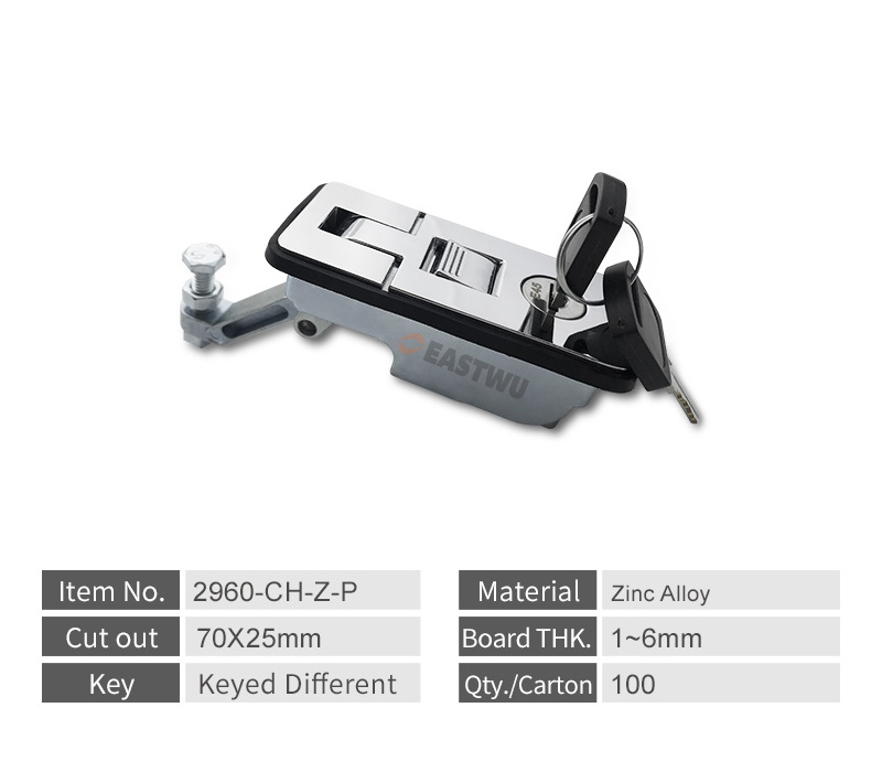• Chrome Keyed Different Trailer Tool Box Small Compression Lock Cut Out 70*25mm