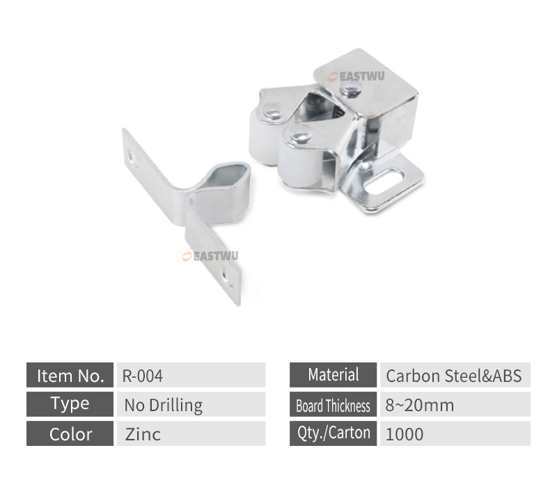Zinc Double Roller Catch No Drilling Carbon Steel&ABS Board Thickness 8~20mm